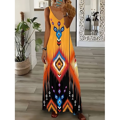 Per donna Abito maxi Vestito Casual Abito a trapezio Abito Sottoveste Vacanza Vintage Etnico Quotidiano Vestibilità regolare Paisley Senza Maniche Scollo a V Bianco Marrone chiaro Verde scuro