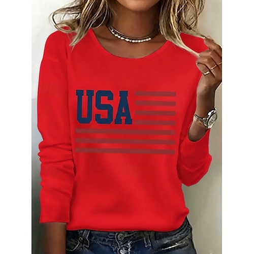 Giorno dell'Indipendenza Americana Per donna Maglietta Stampato Grafico Bandiera Bandiera Americana Elegante Classico Casual Manica Lunga Girocollo Top Regolari Quotidiano Blu Nero Bianco Rosso