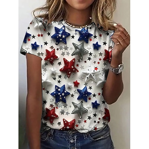 Giorno dell'Indipendenza Americana Per donna Maglietta Stampato Grafico Bandiera Bandiera Americana Elegante Classico Casual Manica Corta Girocollo Top Regolari Quotidiano Bianco Rosso Rosso / blu