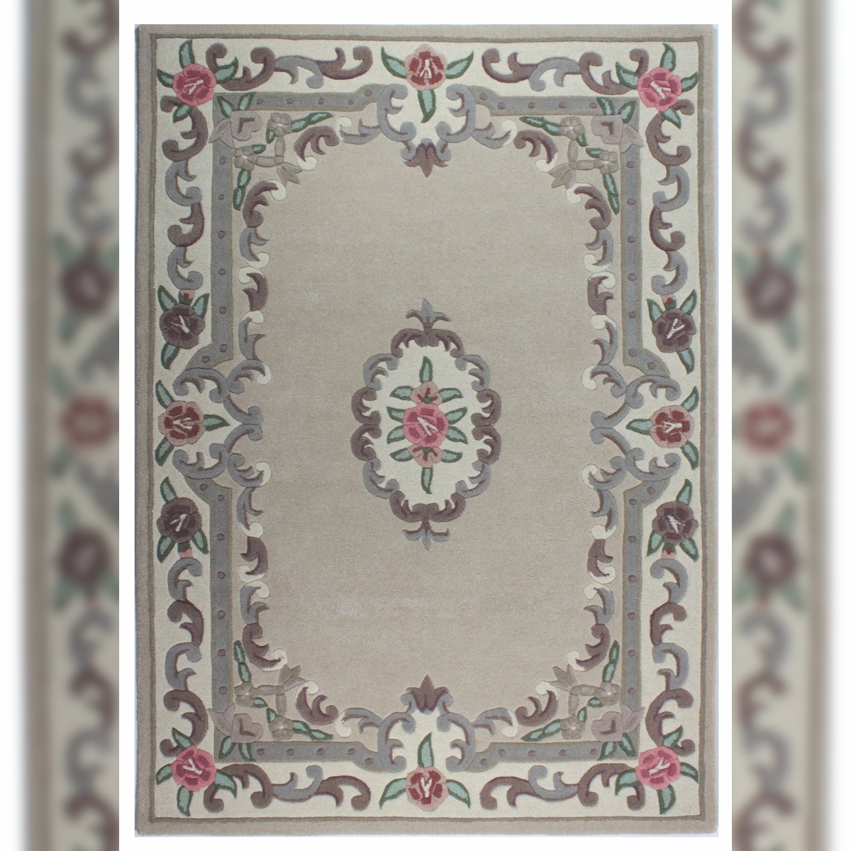Traditioneller Wollteppich `Beauly` mit Handgeschnitzten Details. Farbe: Braun-Beige, 120x180 cm | Kadima Design