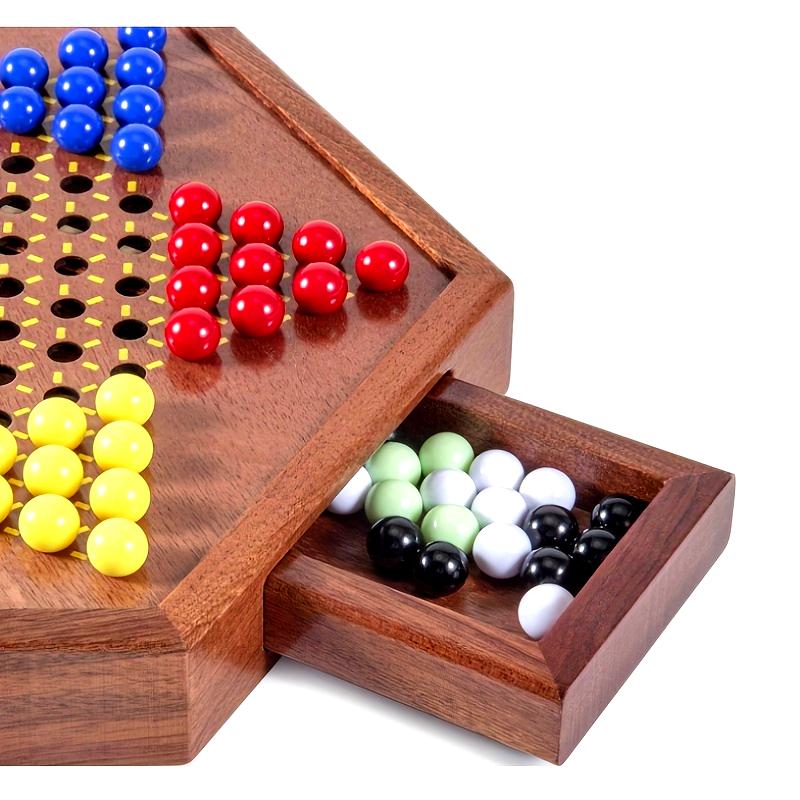 Farbenfrohes Holz-Chinesisches Dame-Set mit Schublade 72 Murmeln, Bis zu 6 Spieler, Klassisches Strategiespiel für alle Altersgruppen, Perfekt für Fam