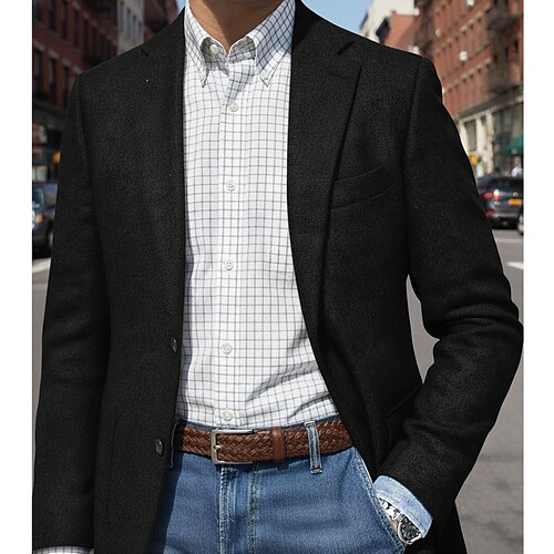 Per uomo Blazer in Tweed Colletto ad incastro Moda Classico Casual Tinta unita Blazer Nero Marrone Grigio Vestibilità standard Monopetto Due Bottoni