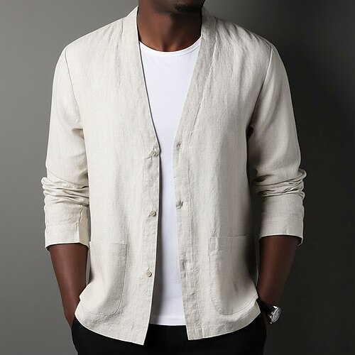 Per uomo Blazer di Lino Scollo a V Moda Leggero Classico Tinta unita Blazer Blazer in lino Cachi chiaro Grigio Vestibilità su misura Monopetto a tre bottoni
