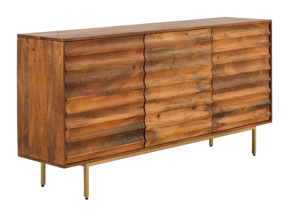 Buffet 3 portes en bois de manguier massif et pieds en métal doré