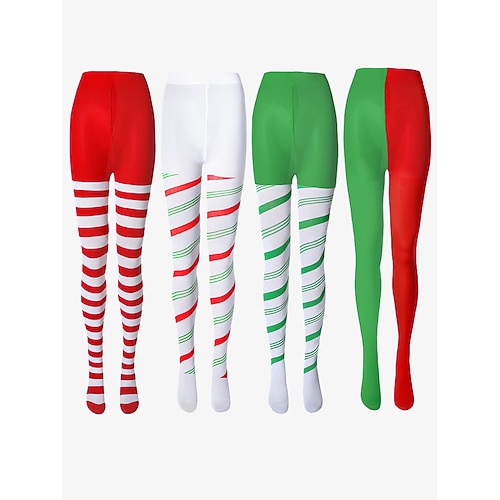 collant a righe natalizie da donna a forma di bastoncino di zucchero – calze festive per feste e cosplay