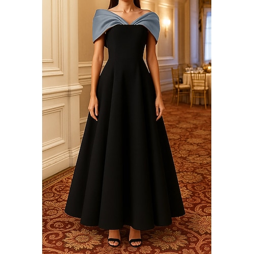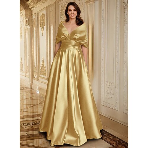 Linea ad A Lunghezza al pavimento Abiti da Ballo Abito da Sera Da principessa Abito formale Elegante Monocolore Scintillante Mezza Manica Bavero Matrimonio Formale Raso Elasticizzato Con Paillettes