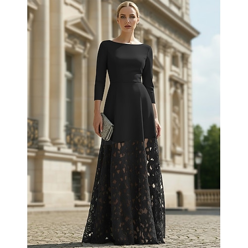 Linea ad A Lunghezza al pavimento Abito da Sera Elegante Madre della sposa Matrimonio informale / diurno Manica 3/4 Scollo a Barca Matrimonio Formale Crepe Elasticizzato con Applicazioni