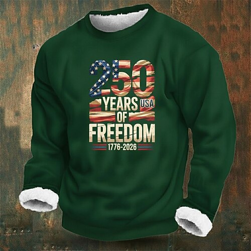 Per uomo Grafico Bandiera Americana Pile Felpa con cappuccio Felpa Streetwear Quotidiano Elegante Classico Casual Girocollo All'aperto Vacanza Uscire Nero Rosso Verde Grigio Stampa Autunno Inverno