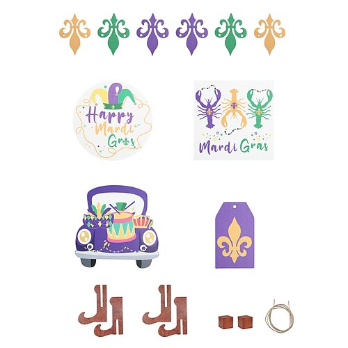 set di vassoi decorativi a più livelli per il martedì grasso, cartelli in legno in stile rustico per il martedì grasso, decorazioni viola, verdi e dorate per la casa, la cucina, la tavola, articoli