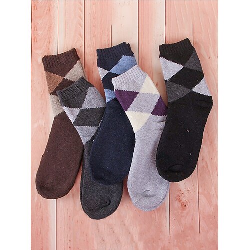 calzini da uomo in misto cotone, set da 5 paia, diverse opzioni di colori e fantasie, comodi ed eleganti per l'uso quotidiano e invernale