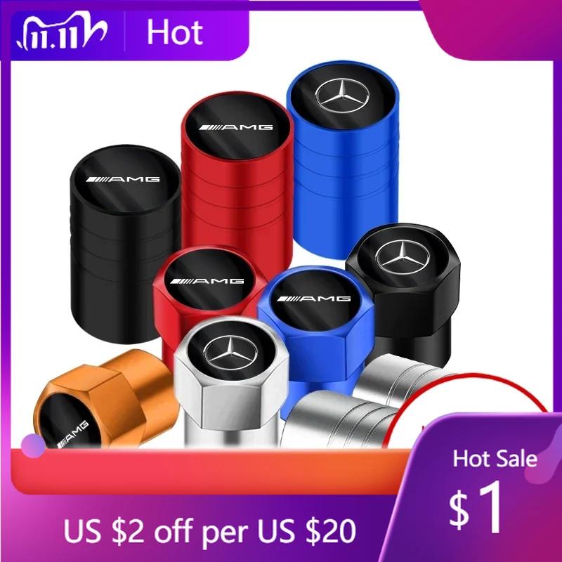 2025 Hot For Mercedes Benz 4pcs Car Styling Aluminum Emblem Wheel Tire Valve Stem Air Caps for Mercedes Benz Amg W205 W211 W204