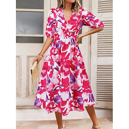 abito maglione donna stampa a righe arricciato girocollo midi elegante bohémien casa quotidiano estate