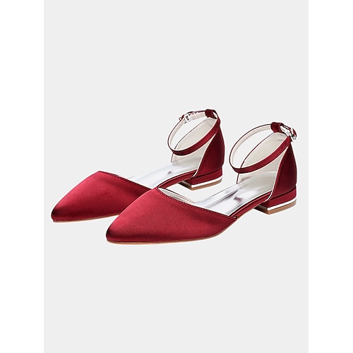 Scarpe da sposa da donna color champagne, décolleté a punta con tacco basso e cinturino alla caviglia con cristalli, eleganti e comode scarpe eleganti