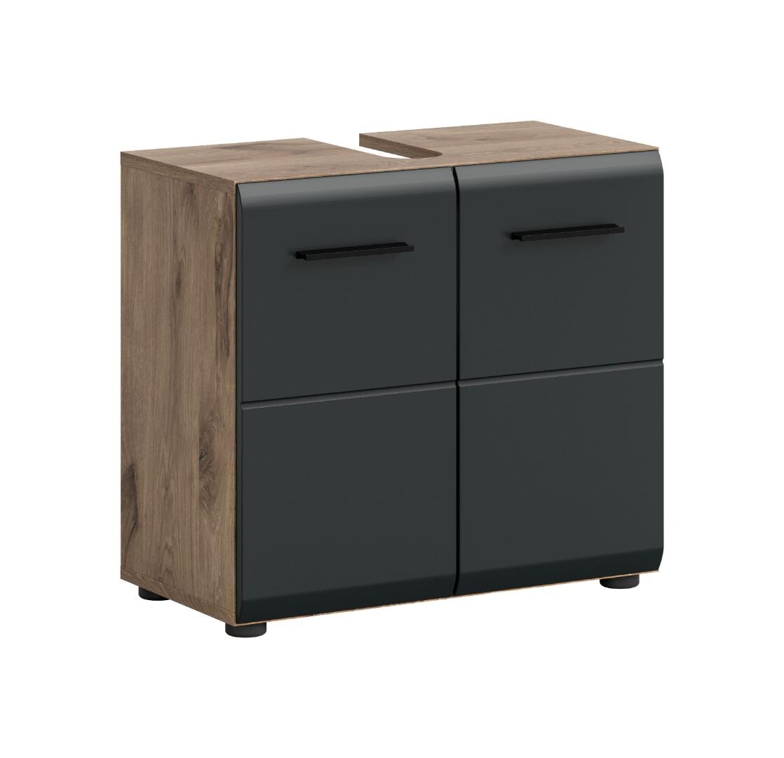 Ebuy24 Ice Waschbeckenunterschrank 2 Türen Schwarz matt, Eiche Dekor.