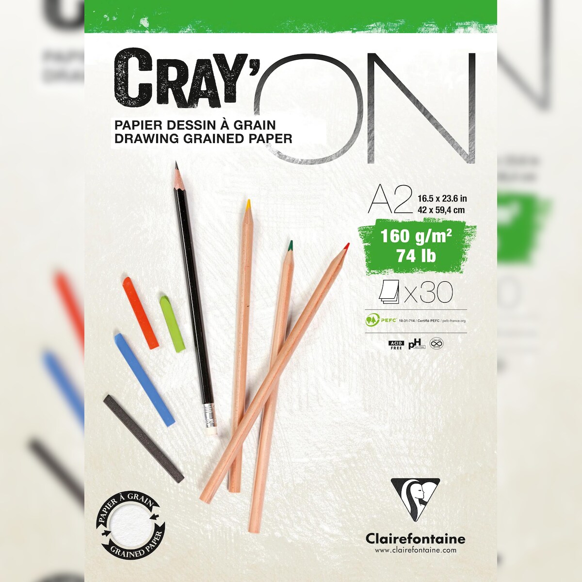 Clairefontaine 3x Cray'ON, geleimter Block A2, 30 Blatt 160g - 975029C