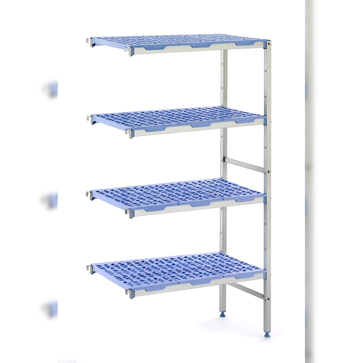 Tournus Anbau - Aluregal mit gelochten Kunststoffauflagen: 849mm lang, 400mm tief, 1750mm hoch, 4 Ebenen Tragkraft: 200 kg / Ebene