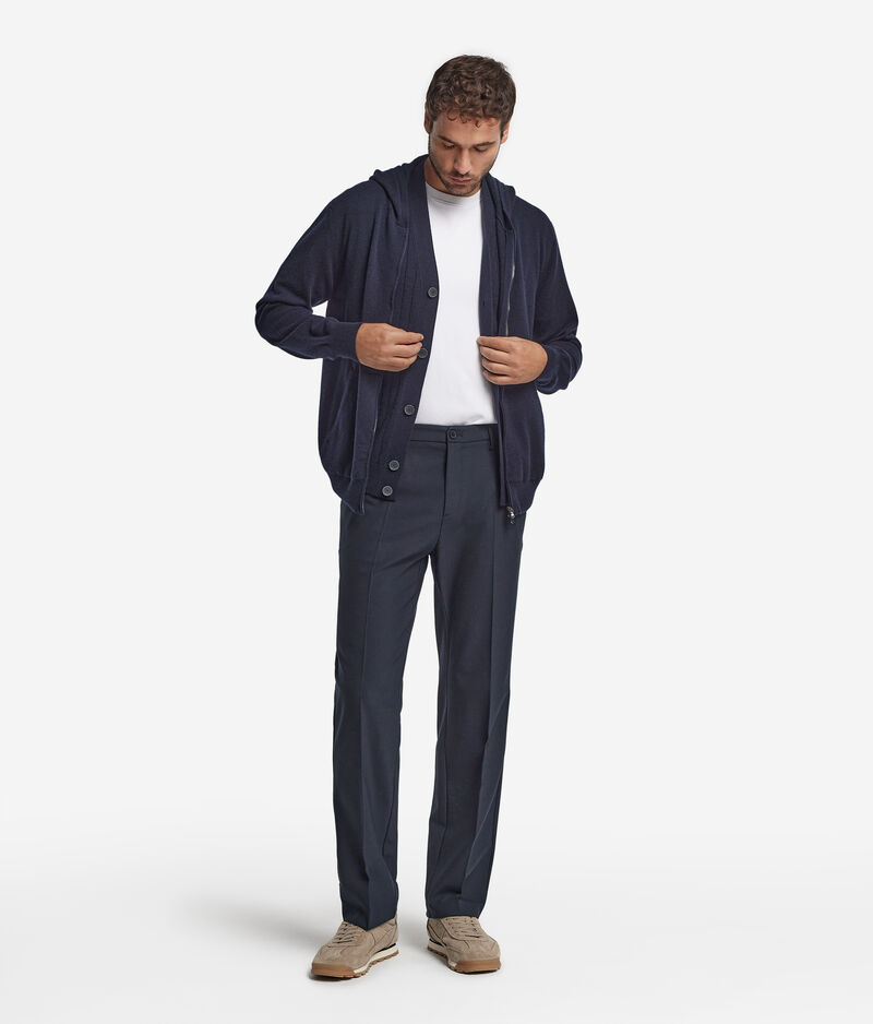 Falconeri Pantalone chino spinato in cotone e cashmere Uomo Blu Navy Taglia 48