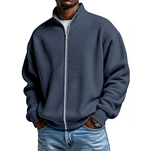 Per uomo Maglia Felpa a nido d'ape Felpa con cappuccio Maglione Felpa con zip intera Aalbicocca Nero Bianco Verde chiaro Verde militare Colletto Mao Semplice Testurizzato Casuale Quotidiano Sport