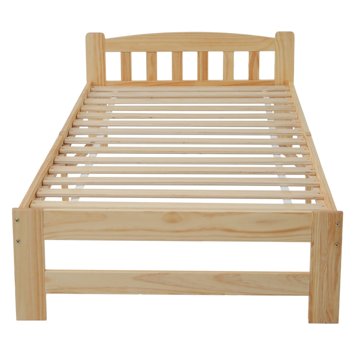 Merax Massivholzbett, Einzelbett Futonbett mit Kopfteil und Lattenrost 90x200cm, Natur