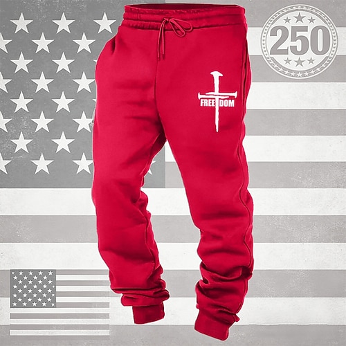 Per uomo Pantaloni da tuta Joggers Pantaloni Coulisse Tasca Elastico in vita Croce Comodità Traspirante Quotidiano All'aperto 250° anniversario dell'America Vacanza Moda Blu Nero Micro-elastico