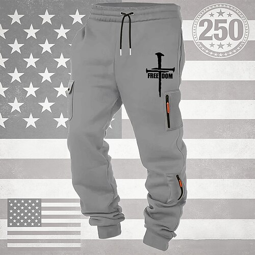 Per uomo Pantaloni da Tuta Cargo Pantaloni da tuta Joggers Pantaloni Coulisse Tasca Elastico in vita Croce Comodità Traspirante Quotidiano All'aperto 250° anniversario dell'America Vacanza Moda Nero