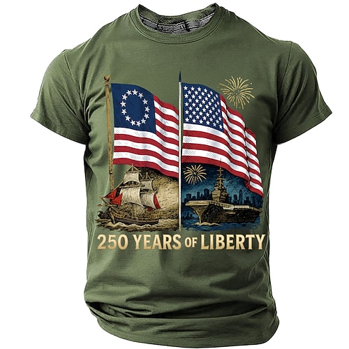 250° anniversario dell'America Per uomo Bandiera Americana 1776 Maglietta Manica Corta maglietta Stampa 3D Girocollo Camicia Quotidiano Militare Quotidiano Streetwear Blu Nero Verde militare Estate