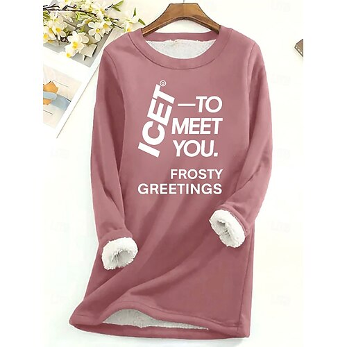 Per donna Pigiama felpato foderato in pile Felpa Pullover Pullover Felpe Grafico Lettera Caldo Streetwear Casual Manica Lunga Girocollo Top lunghi Casa Abbigliamento Quotidiano Casuale Stampato Rosa
