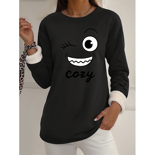 Per donna Pigiama felpato foderato in pile Felpa Pullover Pullover Felpe Semplice Caldo Streetwear Casual Manica Lunga Girocollo Top Regolari Casa Abbigliamento Quotidiano Casuale Stampato Nero