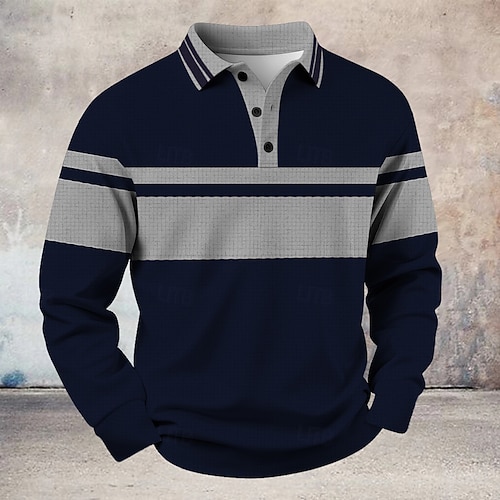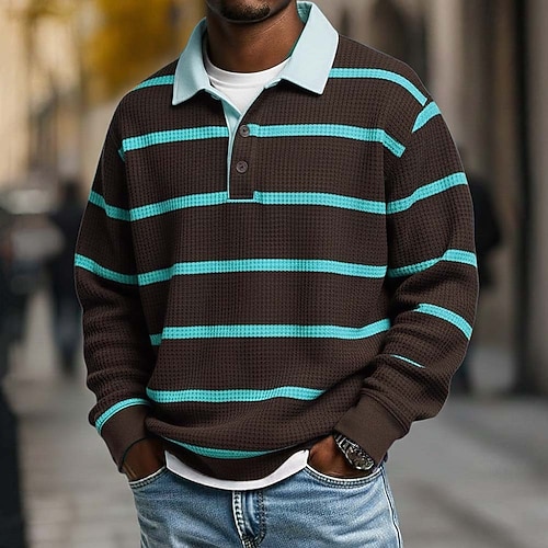 Per uomo Strisce orizzontali Magliette Polo a Nido d'Ape Polo da rugby Testurizzato Manica Lunga Magliette polo Bavero Abbigliamento Sportivo Casual Scuola Athleisure Abbigliamento quotidiano Stampa