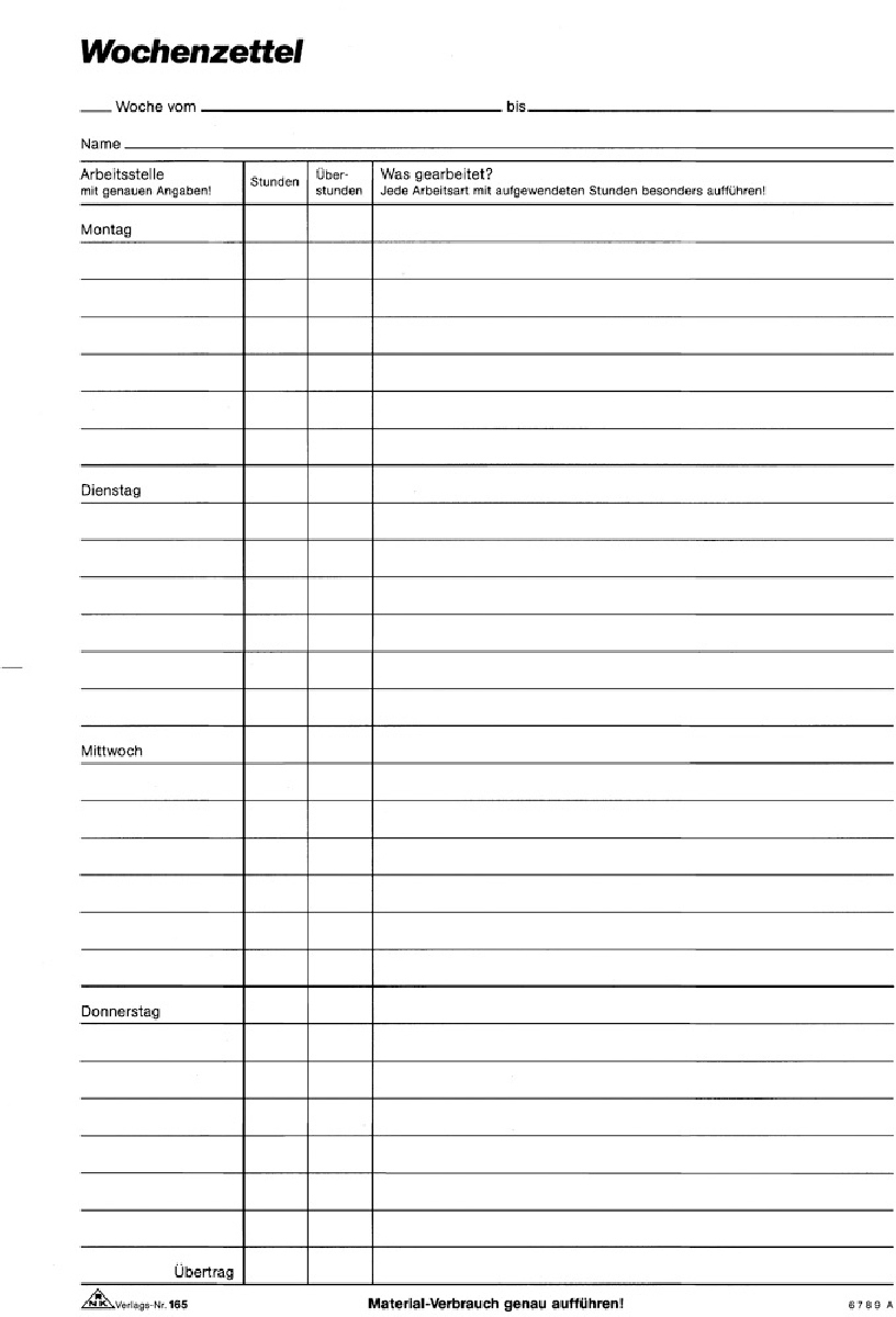 RNK Wochenzettel-Block A4 100 Blatt