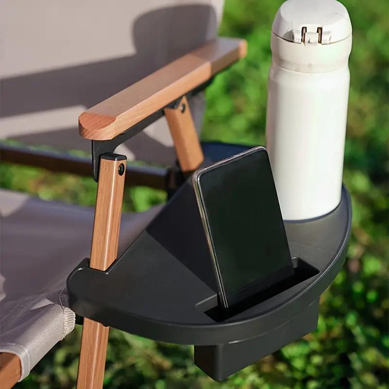 Utomhus hopfällbar solstol med mugghållare, bricka och stativ med plats för vattenmugg och mobiltelefon, solstolstillbehör