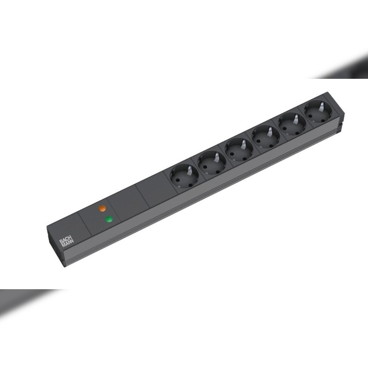 Bachmann 19"-Steckdosenleiste ALU 1HE ÜSS, 6-fach 35°, grau, 2,0m, ohne Schalter
