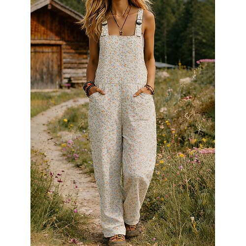 Per donna Salopette Attivo Floreale Senza Maniche Senza maniche Dritto Collo quadrato Tasca con tasca Vacanza Streetwear Vestibilità comoda Bianco Giallo Verde militare Estate