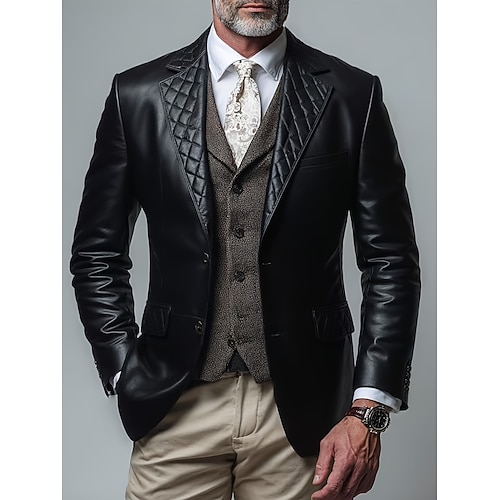 Per uomo Giacca in Ecopelle Blazer Casuale Quotidiano Formale Tasca Elegante Vintage Autunno Inverno PU Tinta unica Tasca Classico Calore Termico Di tendenza Monopetto due bottoni Giacca Nero