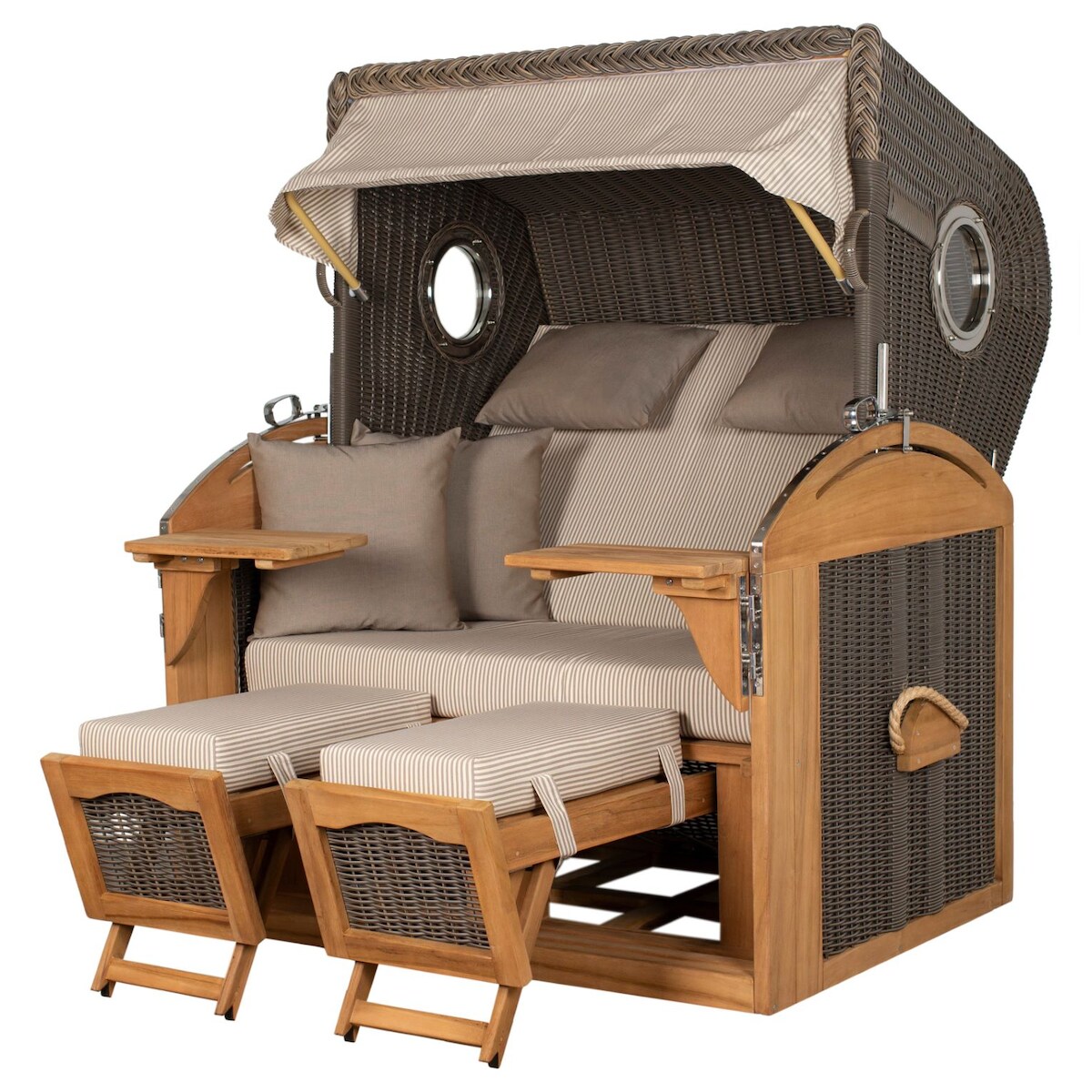 Mr. Deko Strandkorb - bene living - Ammersee Grande XL Teak Bullauge - PE shell - Modell 500 - 2,5-Sitzer inkl. Liftersystem
