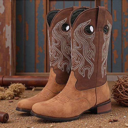 stivali da cowboy da uomo in similpelle grigia con intricati dettagli in rilievo: calzature uniche e audaci per eventi a tema western e country