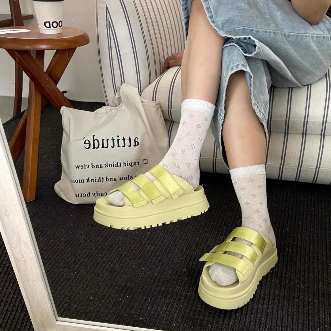 Sheepskin version~ Internet celebrity second uncle shoes casual fashion word with slippers women summer wear thick soles Velcro H cool slippers cm