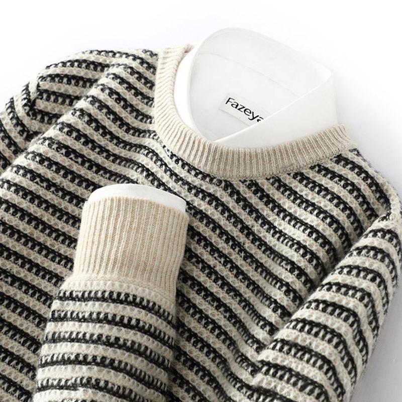 Men's 100% Pure Wool Round Neck Loose Knit Sweater - Thick Pullover for Autumn & Winter cm