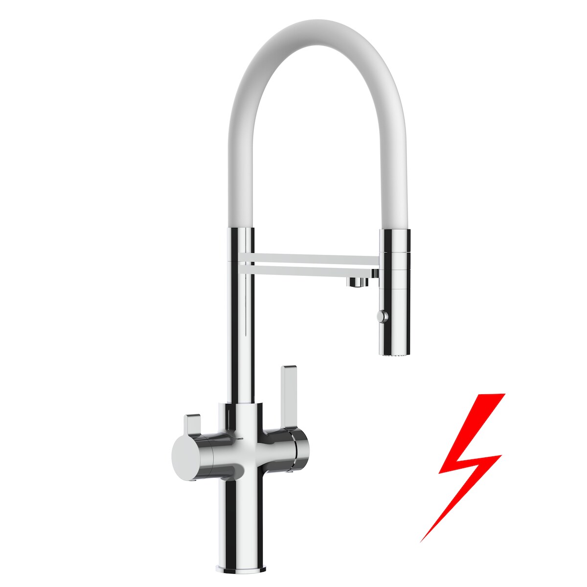 Vizio Niederdruck 3 Wege Wasserhahn Küchenarmatur Spültischmischer FC, Verchromt, mit 360° schwenkbarem Weiss Auslauf und abnehmbare 2 strahl Handbrause