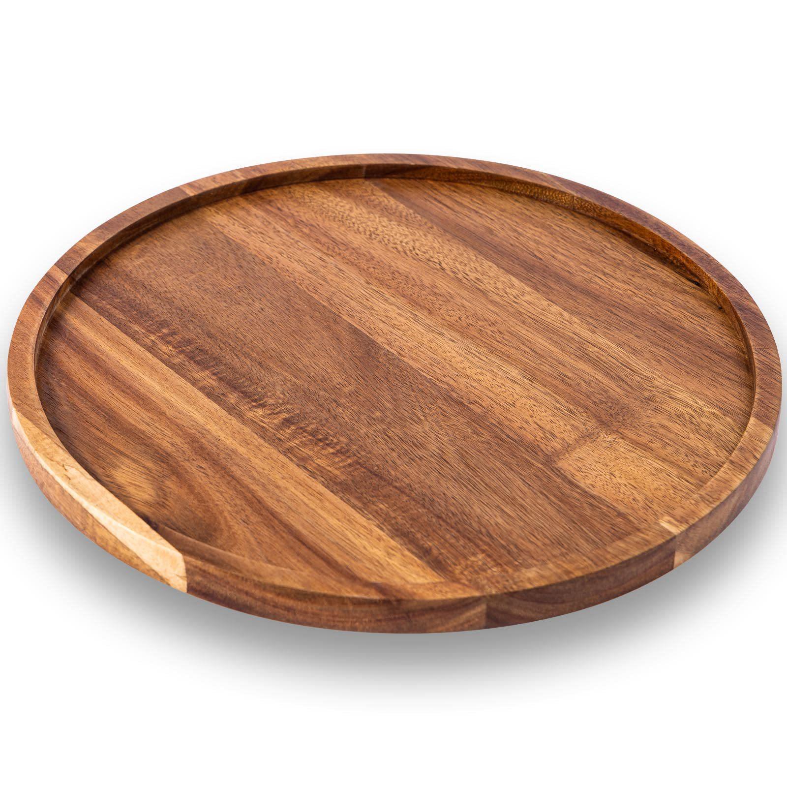 Large Round Acacia Wood Tray: Waterproof Dinner Plate, Tea Tray, Food Photography Dish, Wooden Fruit Plate
