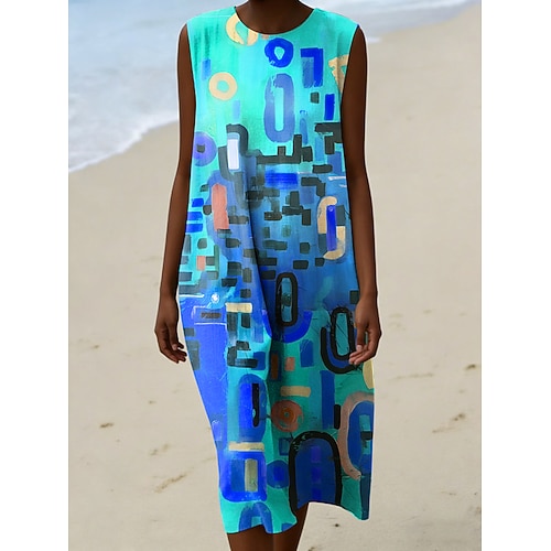 Per donna Abito Midi Abito a Tubino Vacanza Casual Uscire Vestibilità regolare Grafico Geometrico Senza Maniche Girocollo Blu Rosso Arancione Verde Estate Primavera