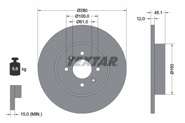 TEXTAR Bremsscheibe PRO 92125603 hinten rechts links voll 280mm für BESTURN (FAW) MAZDA G25Y26251A GF3Y26251 GF3Y26251A