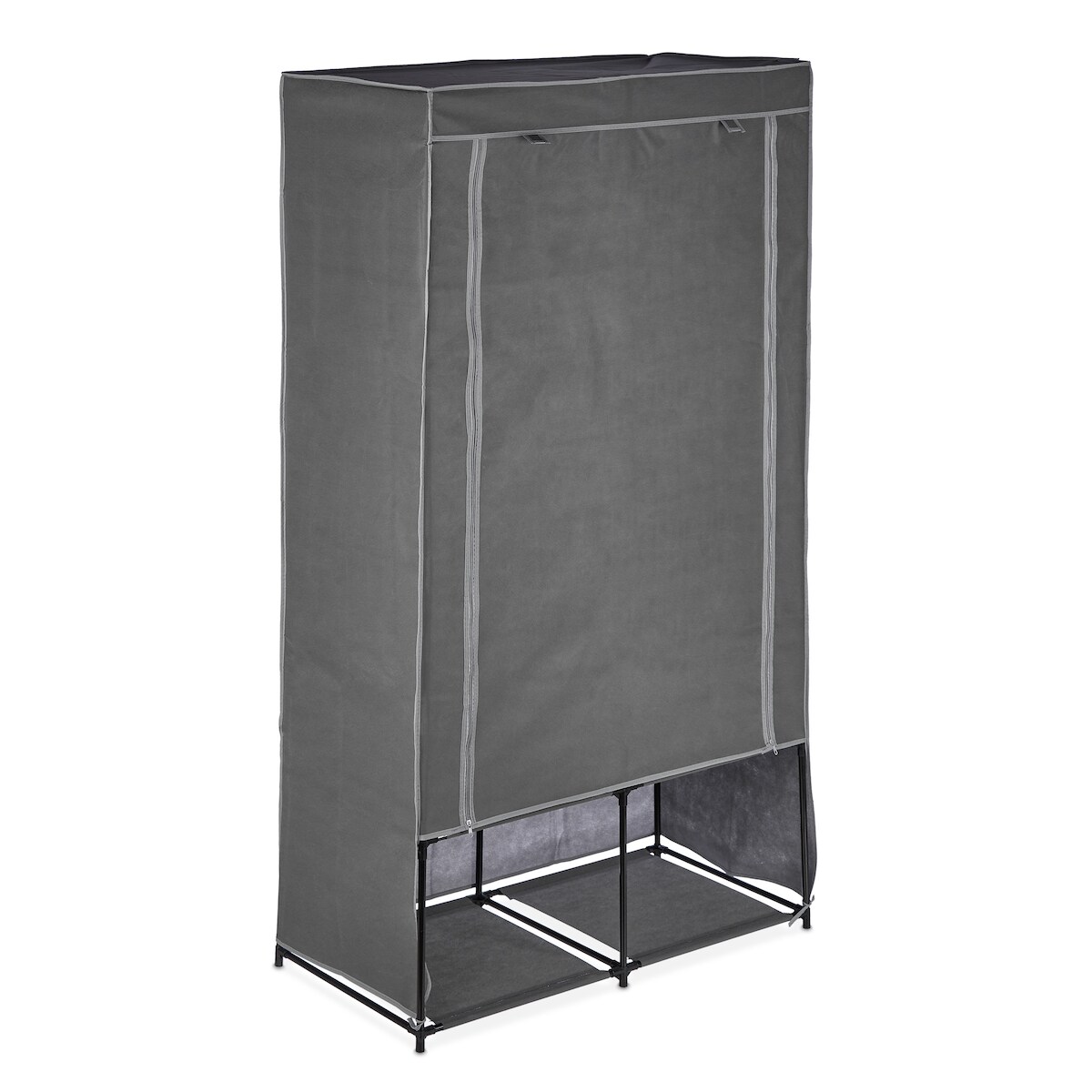 Relaxdays Stoffschrank, mit 2 Kleiderstangen & 6 Fächern, HBT 172 x 90 x 45 cm, stabil, Faltschrank mit Bezug, anthrazit