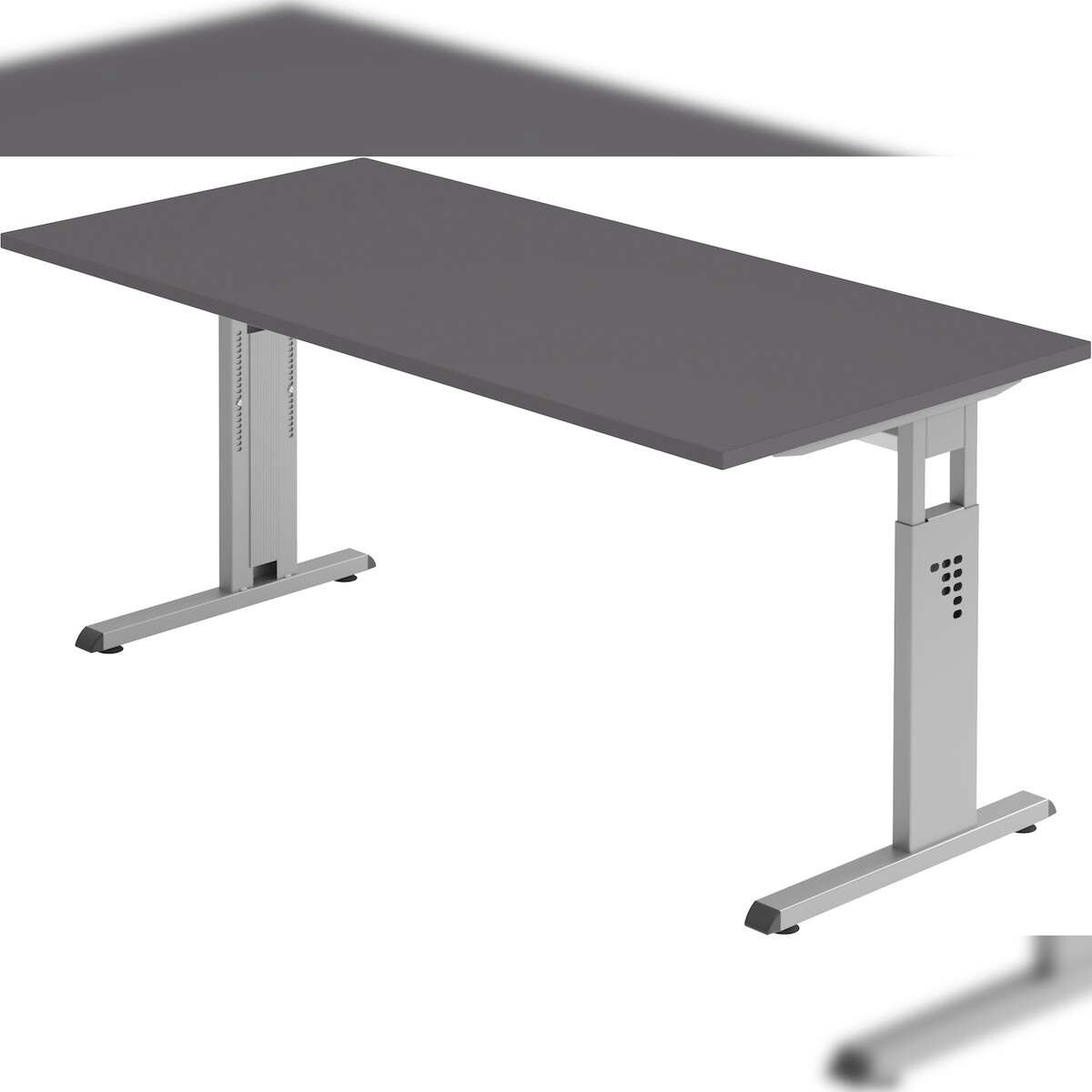 bümö höhenverstellbarer Schreibtisch O-Serie 160x80 cm in Graphit, Gestell in Silber - PC Tisch für's Büro manuell höhenverstellbar, Computertisch
