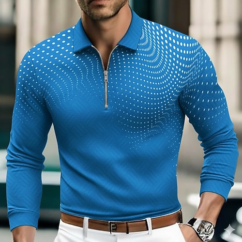 Per uomo Geometrico Polo Manica Lunga Collo ripiegato Moderno Tempo libero Athleisure Casual Quotidiano Cerniera Stampa 3D Primavera Autunno Inverno Nero Blu Verde