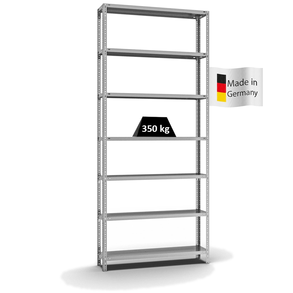 PROREGAL Fachbodenregal Schraubsystem | Grundregal | HxBxT 300x130x30cm | 7 Ebenen | Fachlast 350 kg | Beidseitig nutzbar | Verzinkt