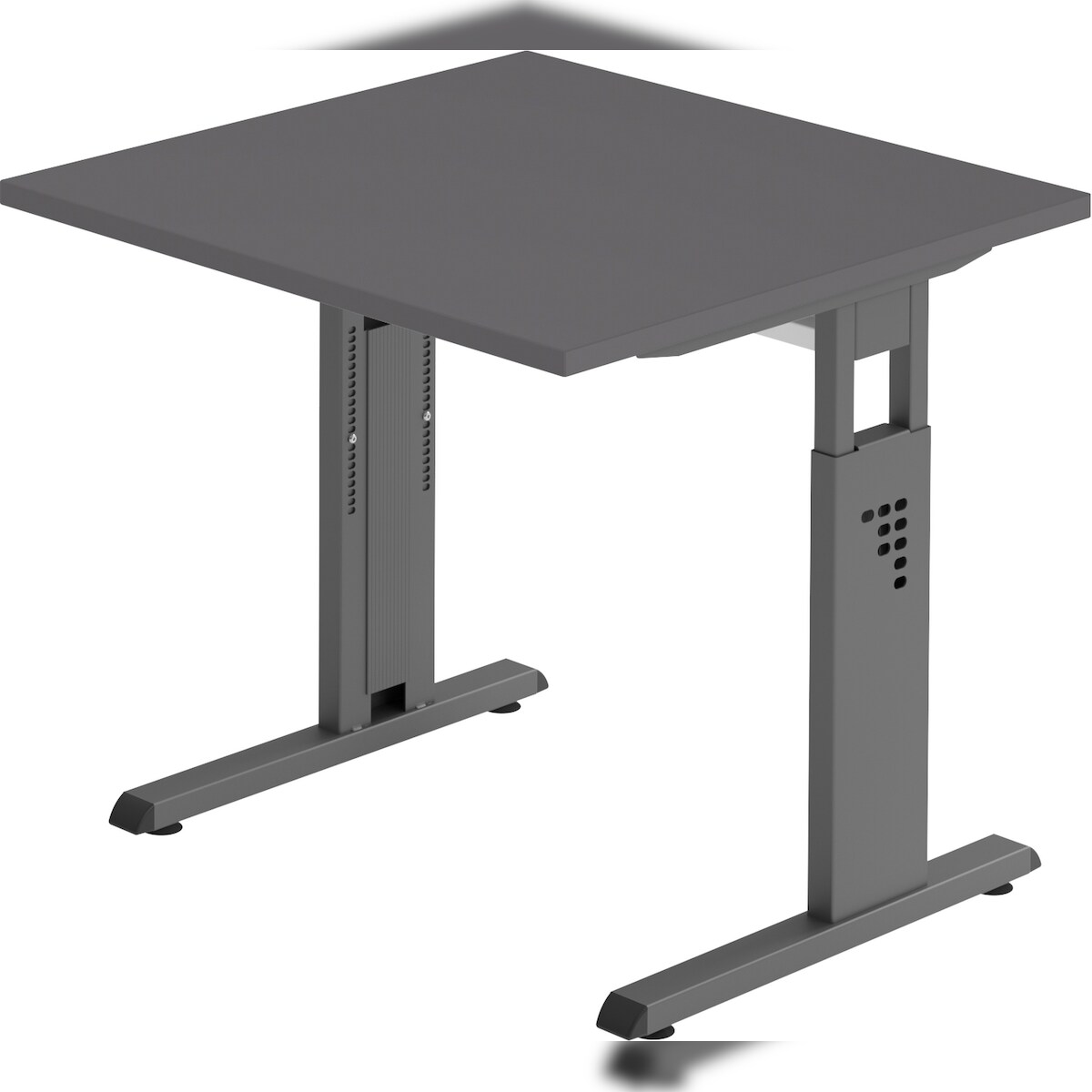 bümö höhenverstellbarer Schreibtisch O-Serie 80x80 cm in Graphit, Gestell in Graphit - PC Tisch klein für's Büro manuell höhenverstellbar,