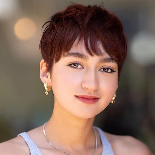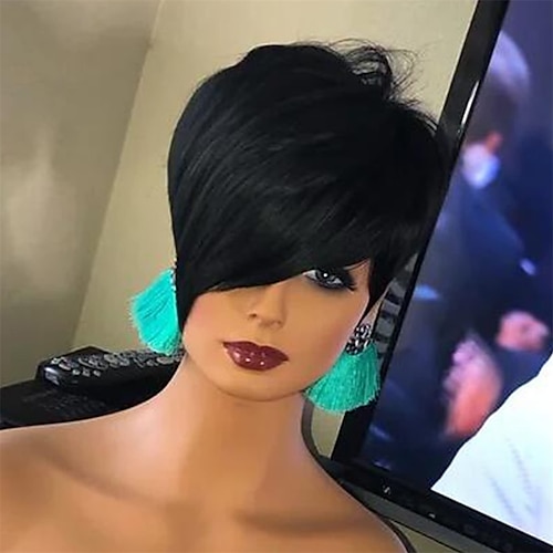 parrucche taglio pixie per donne nere capelli umani brasiliani veri capelli umani parrucche pixie a strati corti con frangia per donne glueless nessuna parrucca anteriore in pizzo parrucca