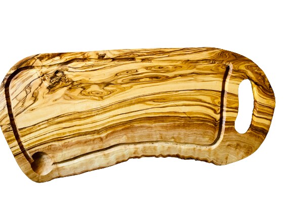 Steakbrett RUSTIKAL mit Grifflasche und Saftrille, (L45-49 cm)