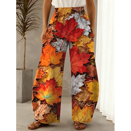 Per donna Gamba larga Pantaloni Pantaloni Palazzo Vacanza Vintage Stile Etnico Lunghezza intera Vita Alta Grafico Foglia Coulisse Tasca Fascia Elastica Comodo Comodità Traspirabilità Elasticizzato